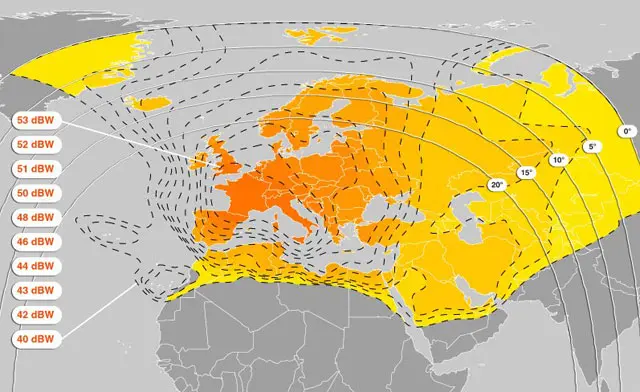 Example: Hotbird (13°E), Nilesat (7°W), Astra (19.2°E)
